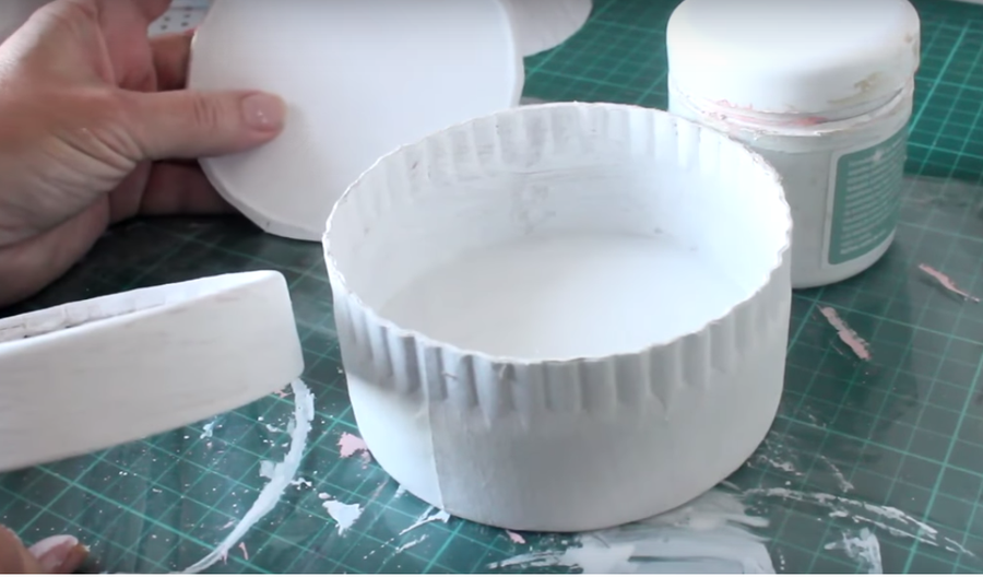 Pintamos con pintura acrílica blanca todas las partes de la caja. Debemos agregar poca agua en el pincel y en la pintura para no humedecer demasiado el cartón.