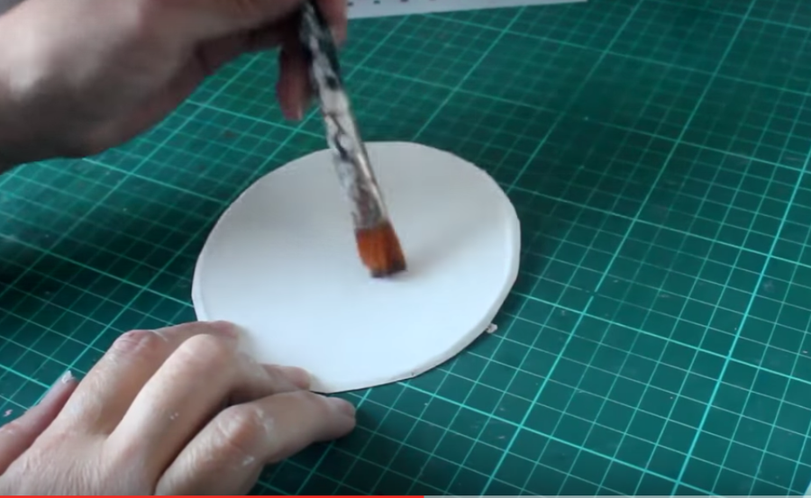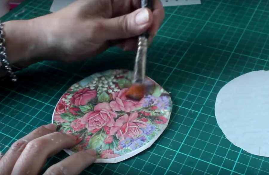 Y colocamos pegamento para decoupage o cola diluida en agua en partes iguales, una pequeña cantidad que vamos a extender dejando una capa muy fina.
