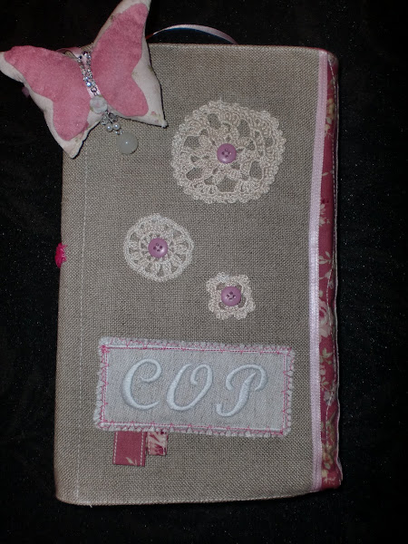 Ya os comente el éxito de las fundas de libro, ésta vez Azu le quiere dar una sorpresa a su hija y me ha pedido una combinación de colores realmente bonita, rosa palo, grosella y verde pistacho. En la portada un bordado realizado a mano y con lentejuelas en las flores. El cierre me lo ha confeccionado mi amiga Esther (que de eso sabe mucho) es un botón forrado a ganchillo y le ha añadido unos romb ...