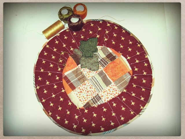 Este mes la consigna era OTOÑO o HALLOWEEN pero que lleve NARANJA... y esto es lo que hicimos! Un tapete calabaza en Patchwork, y así dejamos a todos contentos!