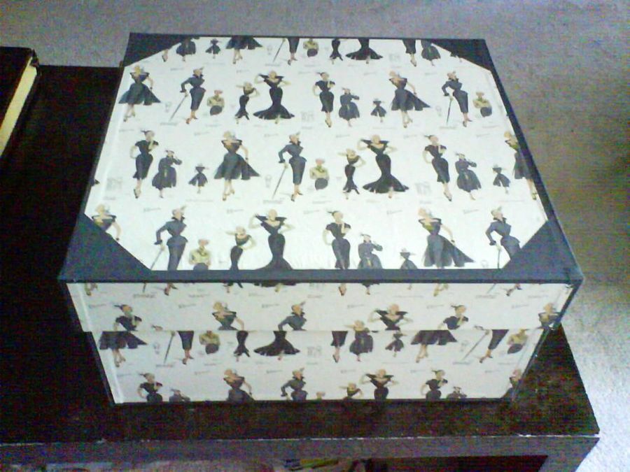 Y finalmente, un detalle muy especial reservado para la protagonista de la boda: Curra2 hizo con la técnica del cartonaje una caja para guardar el vestido de novia. La hizo a la medida, para que pudieran llevarla como equipaje de mano en el avión.