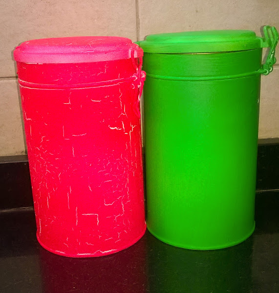 En este DIY vas a encontrar algo así como lo que no hay que hacer si querés que te salga lo que tenías pensado, porque este no era el resultado que buscaba cuando empecé a reciclar estas latas, esperaba mostrar como habían quedado de hermosas pintadas con aerosol, algo simple, una pavada la verdad, pero no fue así; como las instrucciones de los aerosoles dicen que con colores fluor es mejor usar imprimante blanco, decidí usar pintura sintética mate, dejé secar de un día para el otro y esto fue lo que conseguí; un craqueado!!!