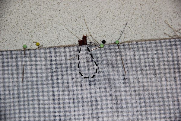 4 - Meter la bolsa dentro del forro y fijar con alfileres