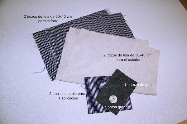- 2 trozos de tela de 30x40 cm para el exterior. El tutorial lo hice con estas medidas pero creo que si en lugar de 40, ponemos 45 cm quedaría mejor.