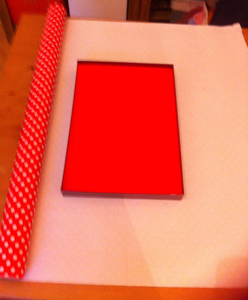 Como la parte de abajo de la caja es roja, no ha hecho falta forrarla. Solo he forrado la tapa con un papel a juego. En este caso he usado lunares, que me encantan.