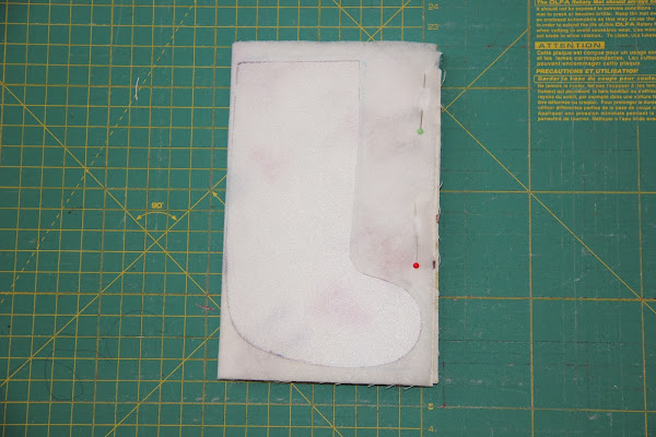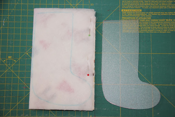 Fold in the middle, so you can see the batting, and draw the boot pattern (you can down load the pattern here)