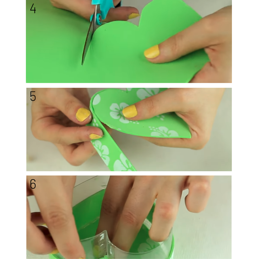 4. Dibuja en la goma eva el contorno de la botella y recorta dos trozos iguales con esa forma como modelo.