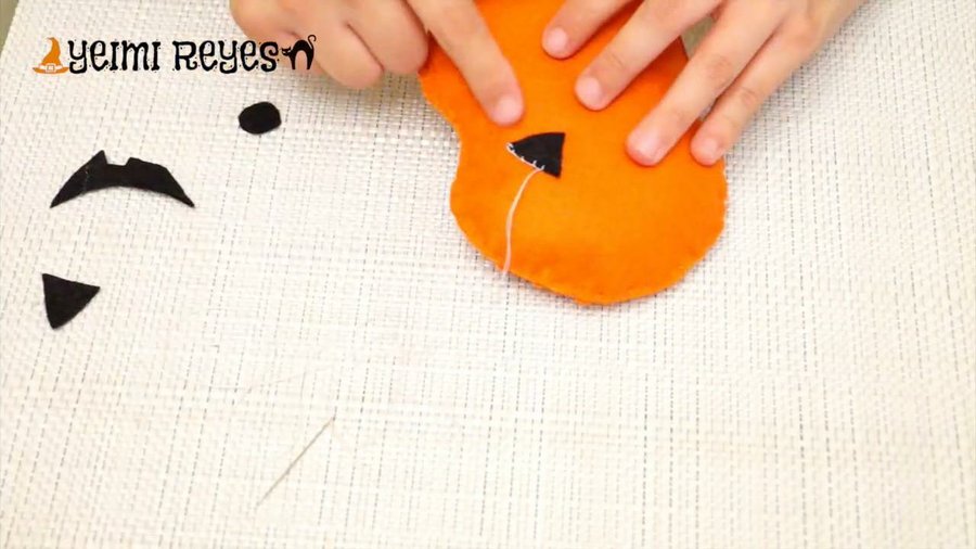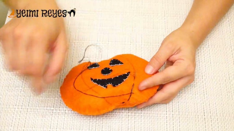 Ahora dibujaremos las lineas que caracterizan a la calabaza y las puedes resaltar con hilo o pintura acrílica en color negro.
