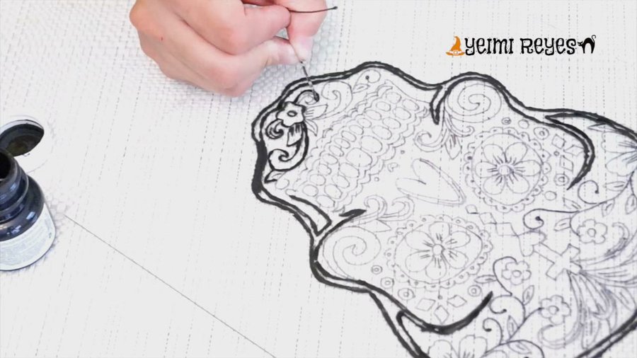 Ya que tenemos la hoja sobre esta colocaremos el vidrio del portarretratos y con el marcador permanente dibujaremos todos los detalles de la imagen.