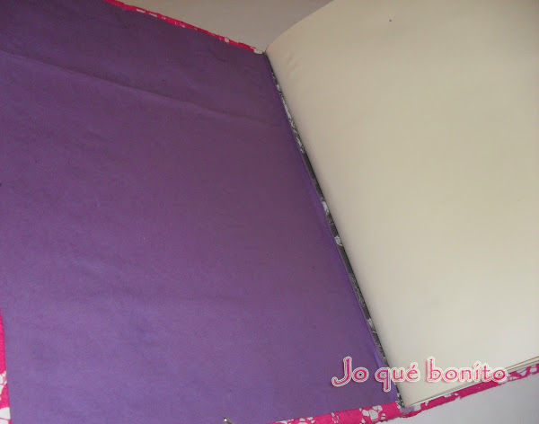 Luego he cortado un trozo de cartulina de la medida de la carpeta (un poco más pequeña) y lo he pegado con cola en el interior para que no se vean las dobleces de la tela.