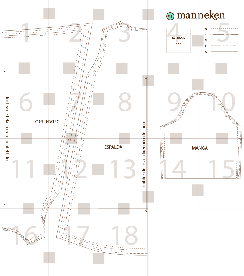 Una vez tengáis montado el patrón, medís el contorno de pecho de la talla que utiliceis para aseguraros de que es la vuestra. Una vez comprobado esto, calcáis la talla que necesitéis en otro papel, y a cortar.