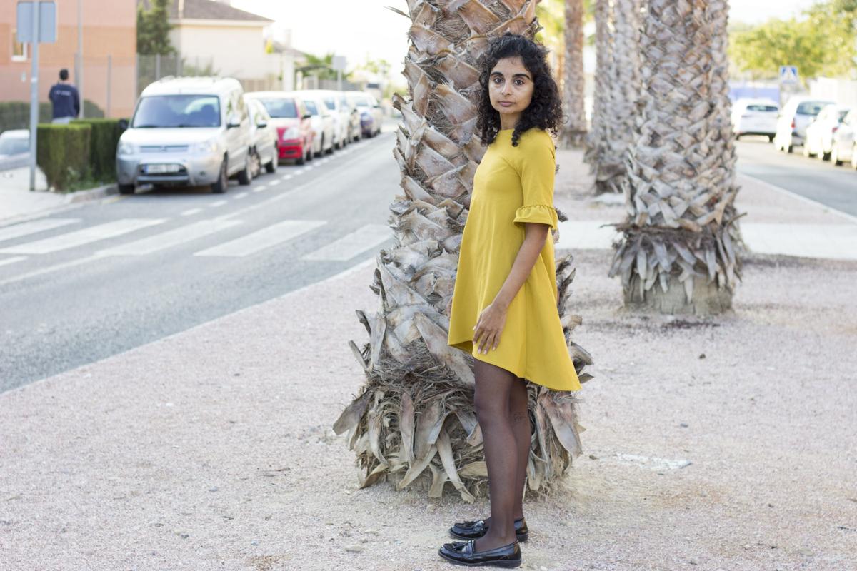 Hoy os enseño a coser un vestido evasé con volantes en las mangas. El patrón está hecho para coserlo en un tejido de punto. Yo he cosido el vestido en un punto roma, que tiene mucha caída, y es súper agradable. También podríais utilizar punto de neopreno, canalé, punto de sudadera…