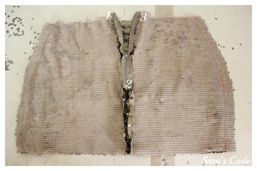 Truco 2: he utilizado una cremallera de 20 cm así que he tenido que coser por encima de los dientes de la cremallera para acortarla. Cosemos en este orden: 1-2-3.