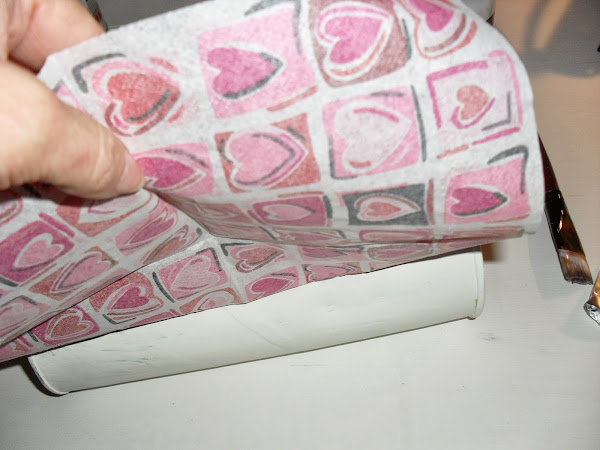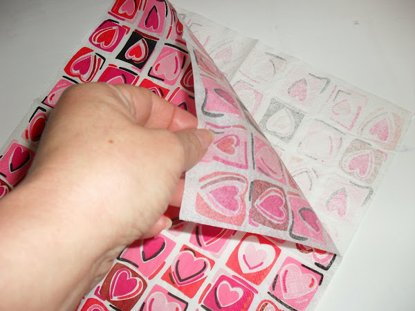 Voy pegando con cuidado la capa de la servilleta decorada: