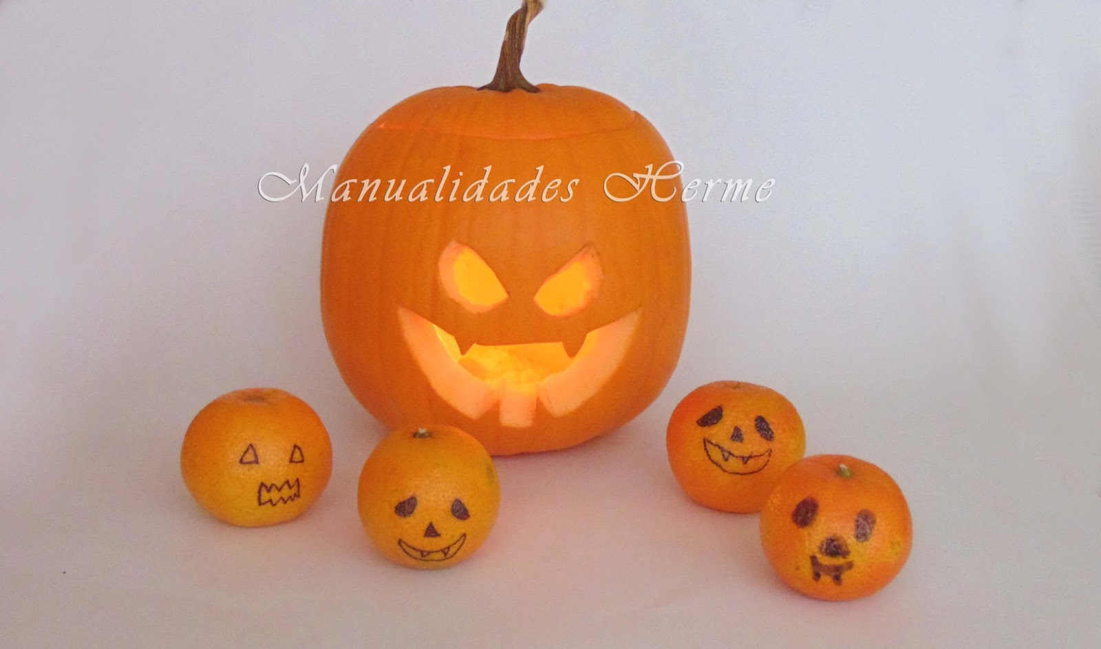Aquí una decoración de Halloween para hacer con niños. Simplemente necesitas un rotulador negro y unas mandarinas. Si no se tiene calabaza siempre se puederecurrir a las naranjas o mandarinas.