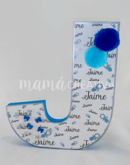 Hola ¿qué tal? Hoy os quiero enseñar el último encargo que he recibido, una letra de madera personalizada.En este caso la letra está pintada de azul, y decorada con el nombre de Jaime y unos chupetes, es para un regalo a un recién nacido. El detalle ideal en estos casos ya que es original y personalizada, y seguro que queda genial en la habitación del bebé.Estas letras también las están utilizando ...