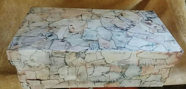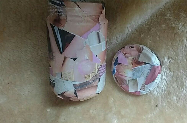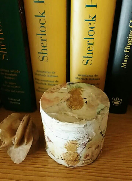 Y cuando el tarro/caja esté totalmente cubierto, dejamos secar. En la caja es muy fácil porque es como hacer un puzzle muy sencillo. En los tarros hay que tener cuidado en los bordes, iremos despacio y alisando bien.