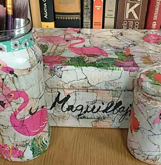 La caja me gusta, los flamencos son tiernos, y el tarro en tonos azules también me gusta.