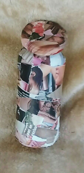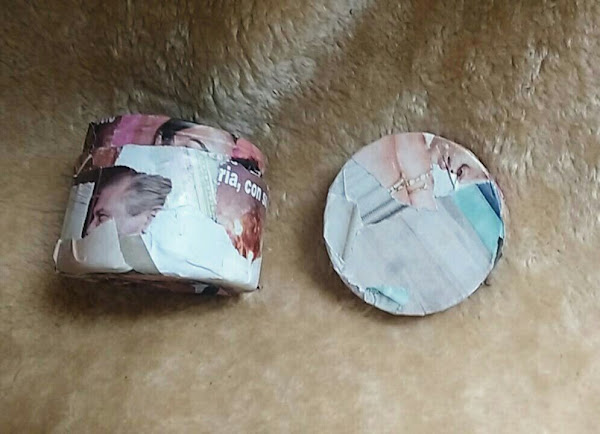 Para lograr ese falso mármol que buscamos tenemos que recubrir todo el frasco con trozos de revista, que cortaremos a mano para dar realismo.
