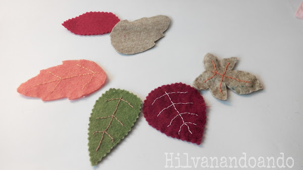 - Una vez recortadas dibuja con puntadas de hilo el tallo interior que tienen las hojas reales.
