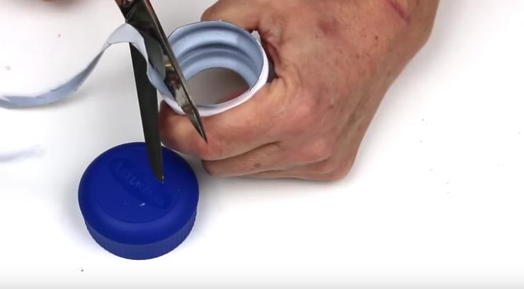 Vamos a realizar una pequeña caja de plástico utilizando los dos tapones y parte de la botella para guardar dentro los cables y las pilas.