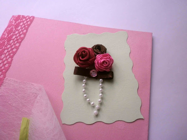 Pegué el trozo de cartulina en el sobre y le pegué el cordón de perlitas y encima las flores mas un lacito.