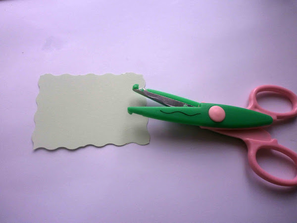 Con la cartulina de otro color recorté un rectángulo con la ayuda de las tijeras de corte ondulado.