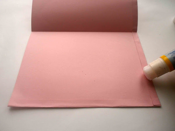 A continuación doblé la cartulina a la mitad y pegué los bordes. Esto será el sobre.