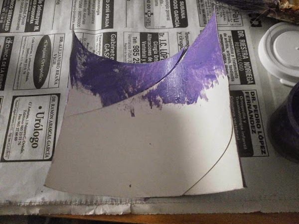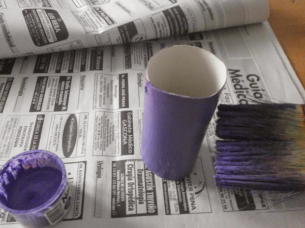 Por otra parte, pinté los tubos de cartón. Cuando secaron los corté a la mitad para pintarlos por la parte de adentro.
