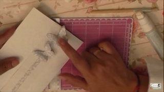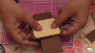 Luego con un troquel le aremos un corte en el borde de la pestaña que nos quedo después de haberla cortado, y pegaremos la cartulina que ya teníamos pre cortada.
