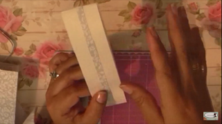 Cortaremos una tira de papel de 4 cm de largo por el doble del ancho de la tarjeta, esto para hacerle una cinta para cerrarla, cortamos na tira de un cm de ancho y el mismo largo de la anterior, que tenga el mismo diseño de la cartulina que añadimos a la tarjeta, y pegamos en la mitad de la cinta de papel.