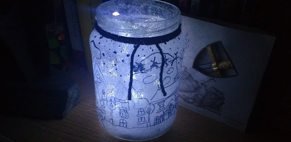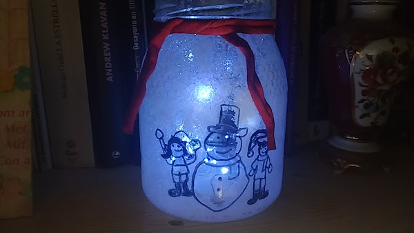 Y solo queda introducir las luces. Yo las compré en un bazar y me costaron 1,80, así que me parece que es una manualidad muy baratita.