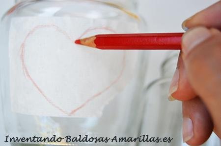 Lo que hacemos es pintarlos con pintura de tiza y con cinta de carrocero hacemos la forma que más nos guste para esa ventanita que vamos a dejar para que se vea la vela.