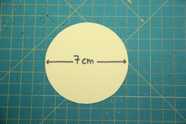 Antes de nada, lo primero que tendremos que hacer es sacar nuestro molde para hacer los números. Se trata de una circunferencia de 7 cm. Yo lo hice en cartulina pero podéis hacerlo también en acetato o papel