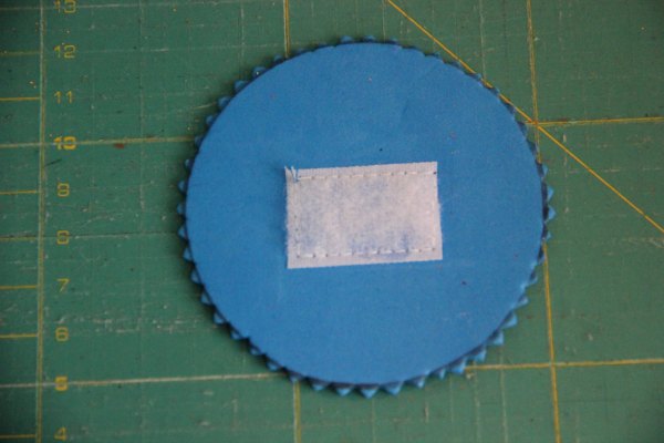 Cosemos (o pegamos), en uno de los lados del círculo más grande, el velcro (3 cm)