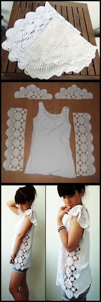 Es una idea muy fresca y original para el verano. Coge una camiseta sosa que tengas en el armario, recorta las zonas que más te gusten del paño de croche y cóselas. Deja volar tu imaginación y seguro que conseguirás diseños originales y únicos.