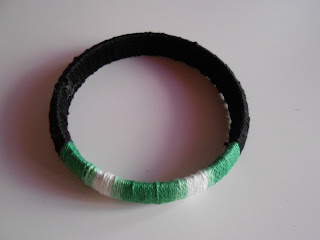 Y a partir de ahí solo necesitamos paciencia e imaginación para combinar los colores que más nos gusten y dar vueltas al hilo alrededor de la pulsera. Asegúrate de que queda tirante y de que cubres la pulsera completamente, si no, se verá el dorado por debajo y no queda del todo bien.
