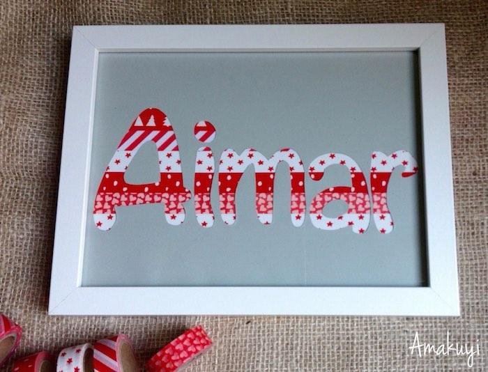 Sólo necesitamos un marco, cartulina y washi-tapes, así que no hace falta ser un experto en manualidades, hasta el más torpe puede hacer este regalo tan original al que se le pueden ir añadiendo accesorios o dibujos al gusto.