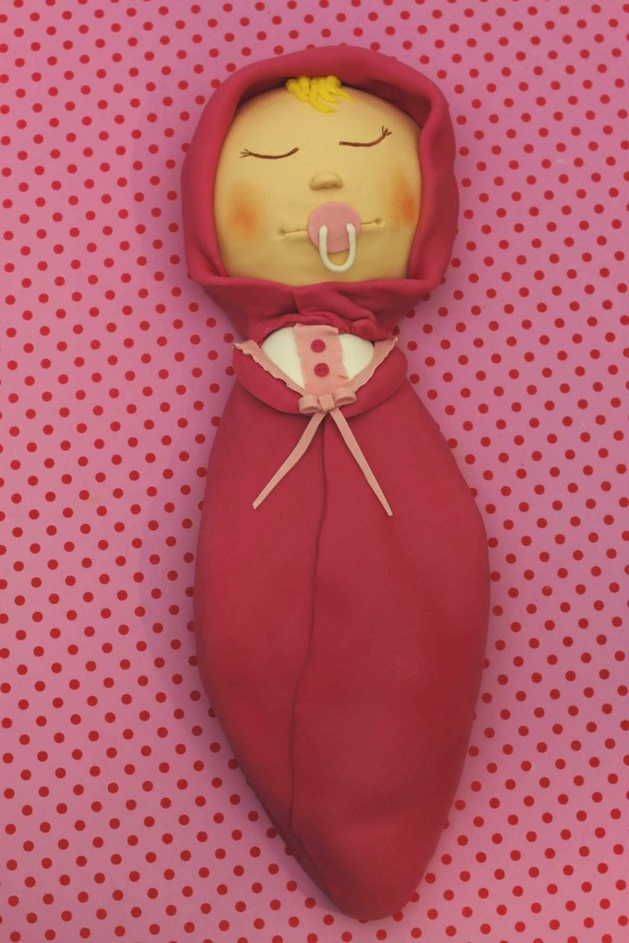 La idea nos la trae el blog Clau creativa, que nos propone esta deliciosa tarta con forma de bebé. Para realizarla necesitamos tres bizcochos con forma alargada a los que les que daremos forma cortándolos, los montaremos y glasearemos e iremos decorando con ayuda de unas cubiertas de tres leches teñidas en diferentes colores. Por último le dibujaremos la cara con ayuda de un rotulador de tinta comestible.