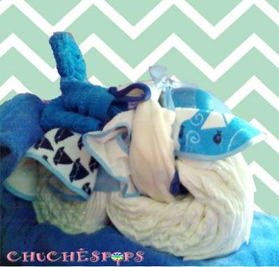 La primera propuesta nos viene desde el blog de Chuchespop, y la verdad es que es un regalo bastante completito y muy original como podréis comprobar.Para realizarla sólo necesitaremos: pañales, mantita, biberón, babero, cinta de raso ancha de color rosa o azul (o del color que se desee), pijama, gomas elásticas y alfileres; cuando lo tengamos todo, solo tenemos que montar la moto siguiendo los pasos que nos dan en el blog.