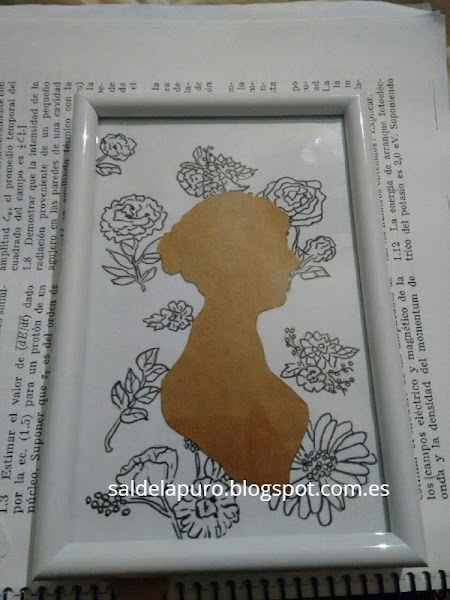 La verdad es que en algunos momentos dudó bastante, el presupuesto tope eran 5 € así que no sabía muy bien por donde tirar, pero al final se animó a hacer un par de cuadros con la silueta para poner en plan dúo en la estantería de los libros.