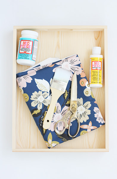 Mod Podge o pegamento. El Mod Podge te servirá para un montón de manualidades. Pero si lo prefieres puedes comprar pegamento de otra marca para pegar la tela a la bandeja.