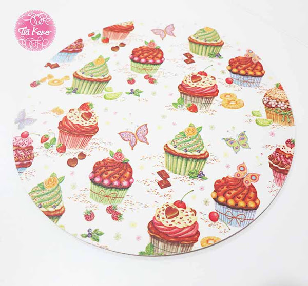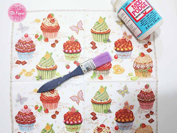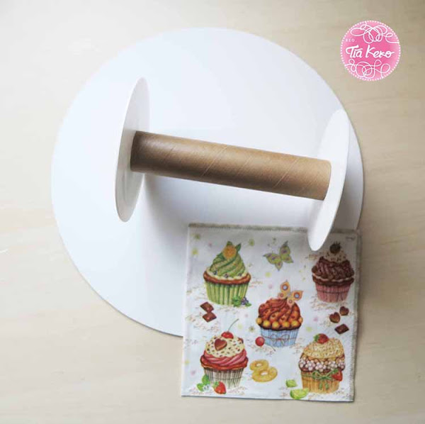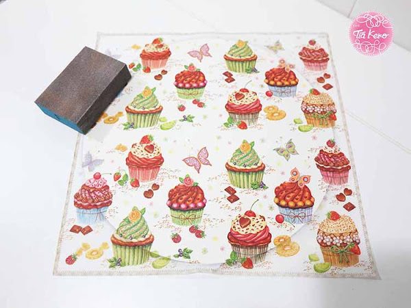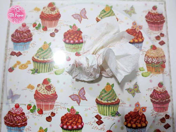 Vamos a decorar la bandeja lo primero. Hemos buscado una servilleta que le va que ni pintado, jajaja, de cupcakes.