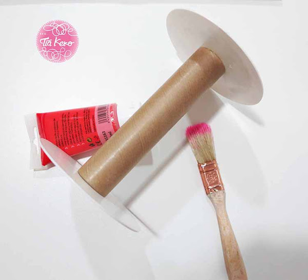Ahora vamos a trabajar con el pie de la bandeja para tartas. Vamos a utilizar como pie una bobina de cartón que nos dieron en una tienda de telas. Esta bobina contenía cinta que se vendía por metros y cuando la vendieron toda iban a tirar la bobina a la basura pero la rescatamos y ahora ha llegado el momento de utilizarla.