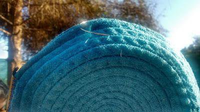 Empezamos haciendo la base de nuestro capazo rústico con fieltro. Para saber la longitud solo tenemos que medir el contorno de los salvamanteles y señalar hasta donde queremos que llegue el lateral del capazo. Yo ni siquiera usé un metro, medí con la cuerda. Y tras medir recortamos un trozo de fieltro de ese largo, y del ancho que queramos.