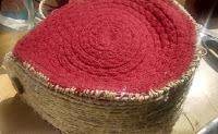 Ahora toca cubrir con cuerda. Aquí hay varios sistemas, yo recorté tiras de cuerda y fui rellenando la base partiendo del centro, y las últimas vueltas las hice rodeando con la cuerda para darle un toque más profesional. Si queréis que quede un poco mejor podéis rodear desde el principio. Y en este paso, que hacemos con la pistola de silicona, es importante ir apretando bien la cuerda, yo usaba un dedal para evitar quemaduras.