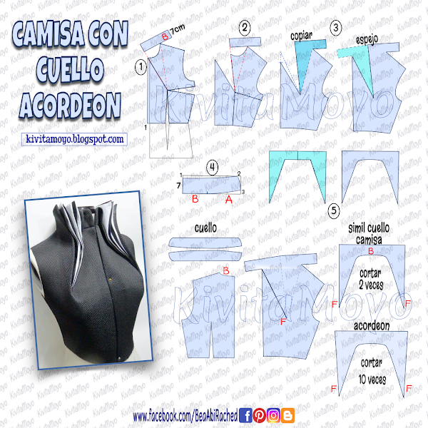 En el centro delante marcamos 2 cm de cruce y dibujamos la solapa que nos guste, calcamos con papel seda el cuello dibujado, recortamos y engomamos al patrón.