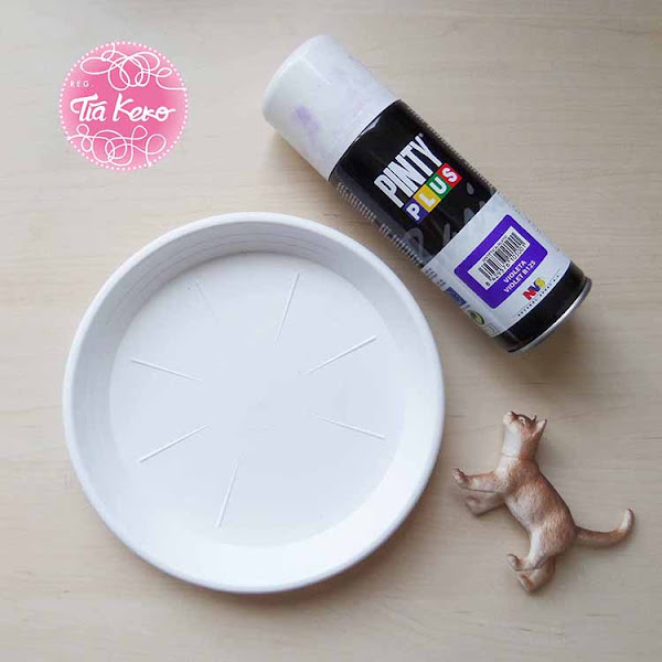 Así que cuando llegamos a casa le enseñe a las niñas su antigua colección de gatitos que habia encontrado en el trastero, para que hicieramos ese colgador pero Natalia pensó que mejor que un colgador para collares, ya habia visto ella la aplicación que podia tener, pensó ¿por qué no lo pintamos?, lo pegamos a un soporte y que sea un joyero más grande. Chica que buena idea!!! le dije y nos pusimos manos a la obra.