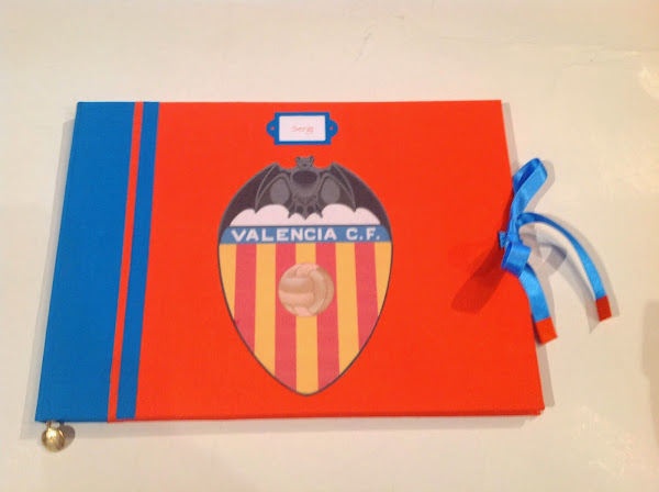 Aunque puede parecer rojo, el libro es naranja, con los colores de la segunda equipación del Valencia CF, un libro de firmas para la Primera Comunión de Sergi
