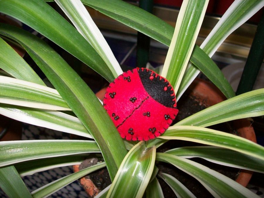 Los siguientes seis trabajos pertenecen a Anita27, a la cual ya se le podría considerar como una auténtica experta. Solo con esta fantástica mariquita ya enamorará a todo el que la vea. ¿Quién ha dicho que solo se pueda decorar la ropa con los broches? En la casa hay miles de rincones donde colocarlos y lucirlos.